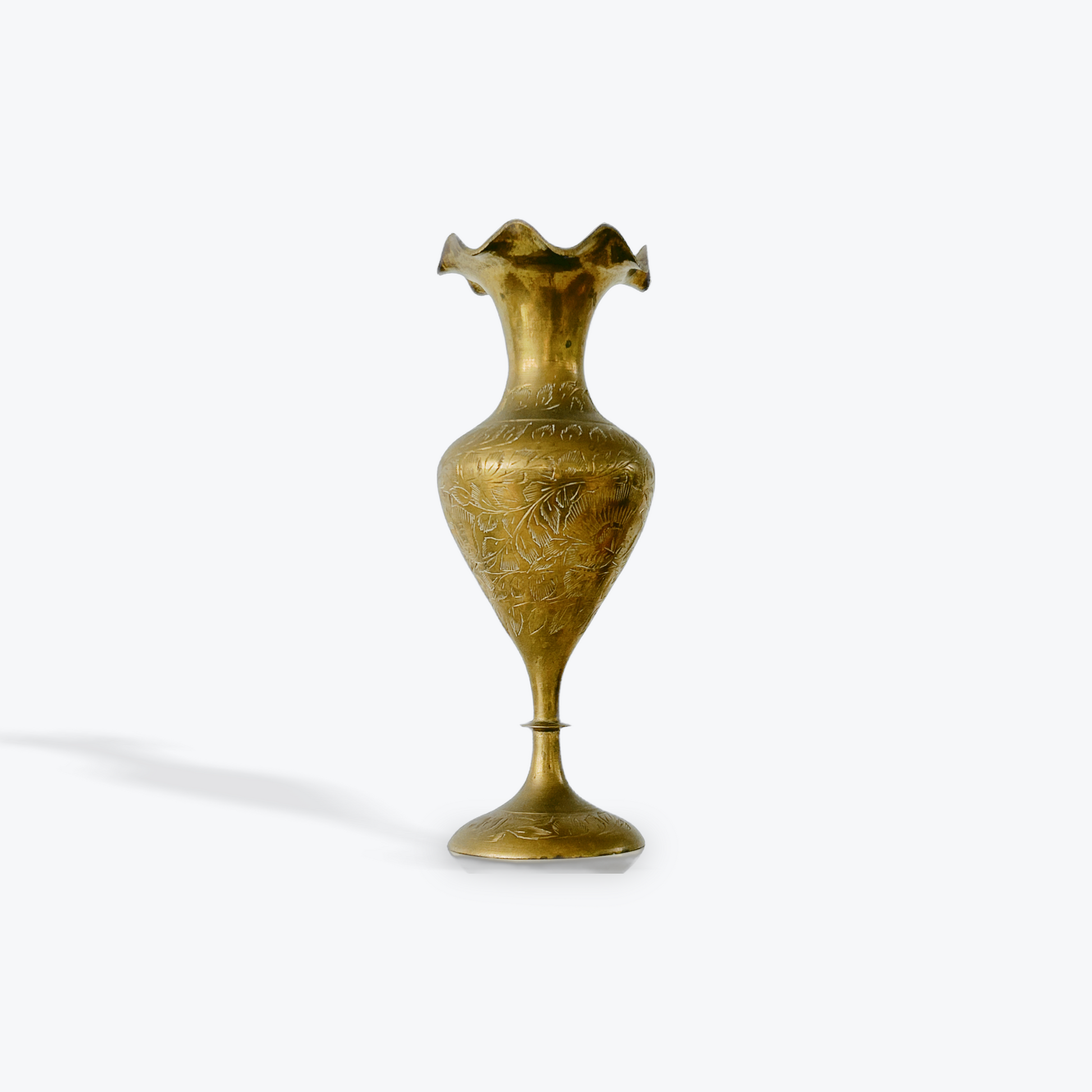 Vintage Etched Brass Scolloped Rimmed 8 INCH Vase